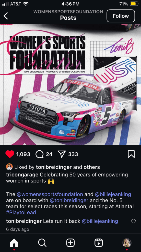 Pretty cool! Toni got to drive the Victoria’s Secret car in 2023 for her Truck Series debut.
