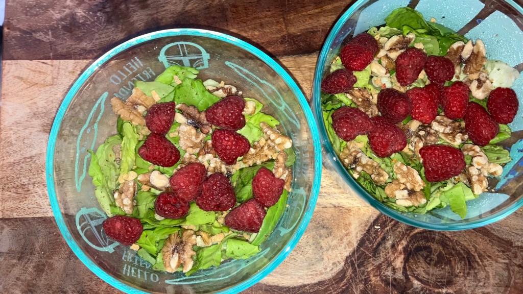- Butter lettuce salad with walnuts and raspberries