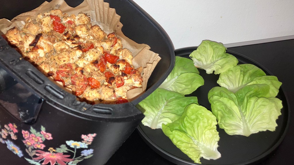 - Lil’ lettuce wraps filled with tofu, feta, and cherry tomatoes
