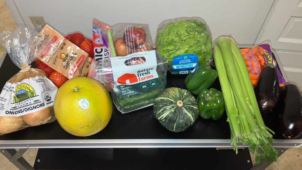 I have a few leftover onions and apples but we’ve done pretty well finishing up all this produce as of March 31. I’ll get a second box delivered this Friday.